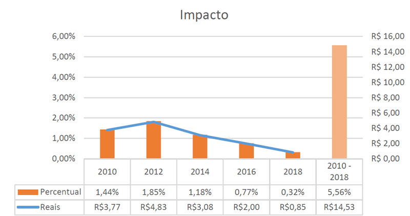 Desta forma, estimamos que o impacto total em 2019, considerando todas as atualizações de 2010 a 2018 é de 5,56% sobre o custo assistencial médio per capita mensal das OPS/SES.